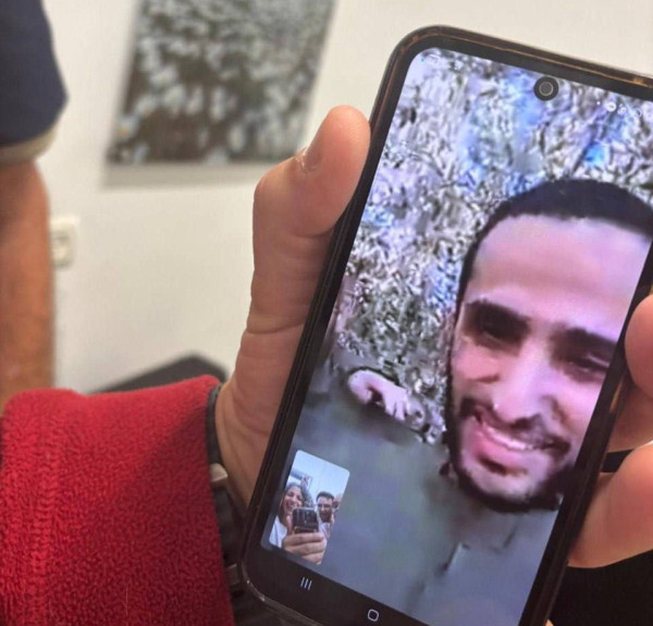 (صور): لأول مرة.. (حماس) تسمح لأسرى إسرائيليين بالتحدث مع ذويهم قبل إطلاق سراحهم