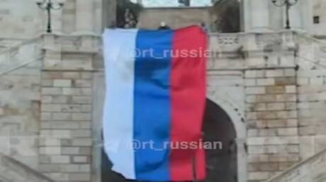 ناشطون إيطاليون يرفعون علما روسيا ضخما تضامنا مع مهرجان "RT" الوثائقي (فيديو)